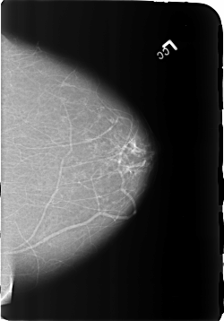 FILE: B_3172_1.RIGHT_CC.OVERLAY TOTAL_ABNORMALITIES 1 ABNORMALITY 1 LESION_TYPE MASS SHAPE OVAL-LYMPH_NODE MARGINS CIRCUMSCRIBED ASSESSMENT 2 SUBTLETY 4 PATHOLOGY BENIGN_WITHOUT_CALLBACK TOTAL_OUTLINES 1 BOUNDARY |