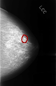 FILE: C_0434_1.LEFT_CC.OVERLAY TOTAL_ABNORMALITIES 1 ABNORMALITY 1 LESION_TYPE MASS SHAPE IRREGULAR MARGINS SPICULATED ASSESSMENT 3 SUBTLETY 3 PATHOLOGY BENIGN_WITHOUT_CALLBACK TOTAL_OUTLINES 1 BOUNDARY |