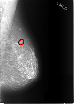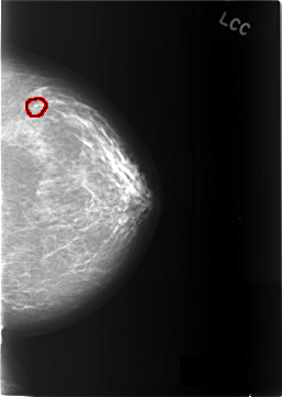 FILE: C_0449_1.LEFT_CC.OVERLAY TOTAL_ABNORMALITIES 1 ABNORMALITY 1 LESION_TYPE CALCIFICATION TYPE DYSTROPHIC DISTRIBUTION CLUSTERED ASSESSMENT 4 SUBTLETY 5 PATHOLOGY BENIGN_WITHOUT_CALLBACK TOTAL_OUTLINES 1 BOUNDARY |