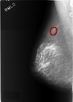 FILE: C_0449_1.RIGHT_MLO.OVERLAY TOTAL_ABNORMALITIES 1 ABNORMALITY 1 LESION_TYPE MASS SHAPE ROUND MARGINS CIRCUMSCRIBED ASSESSMENT 3 SUBTLETY 3 PATHOLOGY BENIGN_WITHOUT_CALLBACK TOTAL_OUTLINES 1 BOUNDARY |