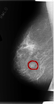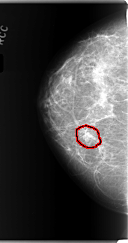 FILE: C_0235_1.RIGHT_CC.OVERLAY TOTAL_ABNORMALITIES 1 ABNORMALITY 1 LESION_TYPE MASS SHAPE OVAL MARGINS MICROLOBULATED ASSESSMENT 4 SUBTLETY 5 PATHOLOGY BENIGN TOTAL_OUTLINES 1 BOUNDARY |
