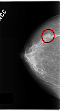 FILE: C_0245_1.RIGHT_CC.OVERLAY TOTAL_ABNORMALITIES 1 ABNORMALITY 1 LESION_TYPE MASS SHAPE OVAL MARGINS CIRCUMSCRIBED ASSESSMENT 4 SUBTLETY 5 PATHOLOGY BENIGN TOTAL_OUTLINES 1 BOUNDARY |