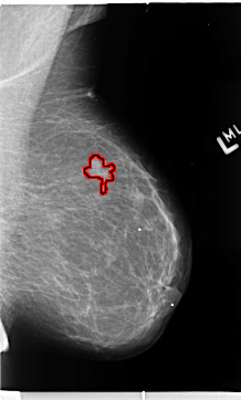 FILE: B_3099_1.LEFT_CC.OVERLAY TOTAL_ABNORMALITIES 1 ABNORMALITY 1 LESION_TYPE MASS SHAPE IRREGULAR MARGINS ILL_DEFINED ASSESSMENT 3 SUBTLETY 3 PATHOLOGY BENIGN TOTAL_OUTLINES 1 BOUNDARY |