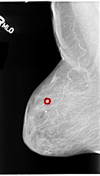 FILE: B_3130_1.RIGHT_CC.OVERLAY TOTAL_ABNORMALITIES 1 ABNORMALITY 1 LESION_TYPE CALCIFICATION TYPE PLEOMORPHIC DISTRIBUTION CLUSTERED ASSESSMENT 4 SUBTLETY 2 PATHOLOGY BENIGN TOTAL_OUTLINES 1 BOUNDARY |