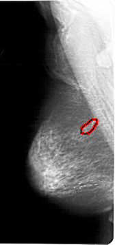 FILE: A_1123_1.LEFT_MLO.OVERLAY TOTAL_ABNORMALITIES 1 ABNORMALITY 1 LESION_TYPE CALCIFICATION TYPE PLEOMORPHIC DISTRIBUTION SEGMENTAL LESION_TYPE MASS SHAPE LOBULATED MARGINS ILL_DEFINED ASSESSMENT 4 SUBTLETY 4 PATHOLOGY BENIGN TOTAL_OUTLINES 1 BOUNDARY |