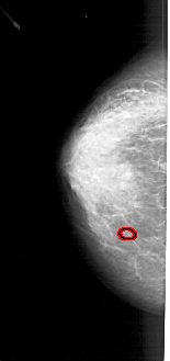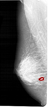 FILE: A_1280_1.LEFT_MLO.OVERLAY TOTAL_ABNORMALITIES 1 ABNORMALITY 1 LESION_TYPE CALCIFICATION TYPE PLEOMORPHIC DISTRIBUTION CLUSTERED ASSESSMENT 4 SUBTLETY 2 PATHOLOGY BENIGN TOTAL_OUTLINES 1 BOUNDARY |