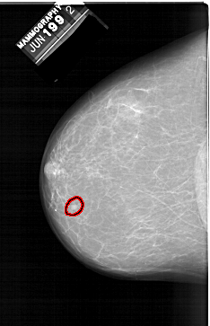 FILE: A_1398_1.LEFT_CC.OVERLAY TOTAL_ABNORMALITIES 1 ABNORMALITY 1 LESION_TYPE MASS SHAPE LOBULATED MARGINS CIRCUMSCRIBED ASSESSMENT 3 SUBTLETY 3 PATHOLOGY BENIGN TOTAL_OUTLINES 1 BOUNDARY |