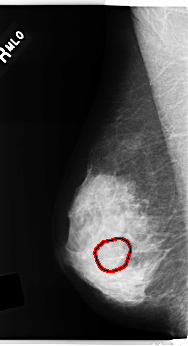 FILE: C_0284_1.RIGHT_CC.OVERLAY TOTAL_ABNORMALITIES 1 ABNORMALITY 1 LESION_TYPE MASS SHAPE ROUND MARGINS OBSCURED ASSESSMENT 3 SUBTLETY 4 PATHOLOGY BENIGN TOTAL_OUTLINES 1 BOUNDARY |