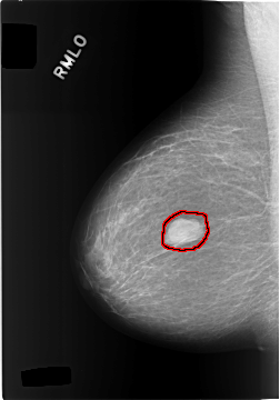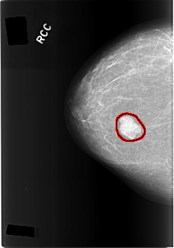 FILE: C_0305_1.RIGHT_CC.OVERLAY TOTAL_ABNORMALITIES 1 ABNORMALITY 1 LESION_TYPE MASS SHAPE LOBULATED MARGINS CIRCUMSCRIBED ASSESSMENT 4 SUBTLETY 5 PATHOLOGY BENIGN TOTAL_OUTLINES 1 BOUNDARY |