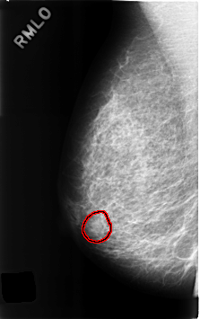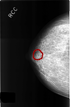 FILE: C_0311_1.RIGHT_CC.OVERLAY TOTAL_ABNORMALITIES 1 ABNORMALITY 1 LESION_TYPE MASS SHAPE OVAL MARGINS CIRCUMSCRIBED ASSESSMENT 3 SUBTLETY 3 PATHOLOGY BENIGN TOTAL_OUTLINES 1 BOUNDARY |