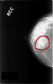 FILE: C_0314_1.RIGHT_CC.OVERLAY TOTAL_ABNORMALITIES 1 ABNORMALITY 1 LESION_TYPE MASS SHAPE LOBULATED MARGINS OBSCURED ASSESSMENT 3 SUBTLETY 4 PATHOLOGY BENIGN TOTAL_OUTLINES 1 BOUNDARY |