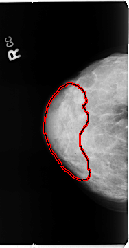 FILE: B_3112_1.RIGHT_CC.OVERLAY TOTAL_ABNORMALITIES 1 ABNORMALITY 1 LESION_TYPE CALCIFICATION TYPE PLEOMORPHIC DISTRIBUTION REGIONAL ASSESSMENT 4 SUBTLETY 3 PATHOLOGY BENIGN TOTAL_OUTLINES 1 BOUNDARY |