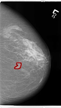 FILE: B_3149_1.LEFT_CC.OVERLAY TOTAL_ABNORMALITIES 1 ABNORMALITY 1 LESION_TYPE MASS SHAPE LOBULATED MARGINS CIRCUMSCRIBED-MICROLOBULATED ASSESSMENT 4 SUBTLETY 4 PATHOLOGY BENIGN TOTAL_OUTLINES 1 BOUNDARY |