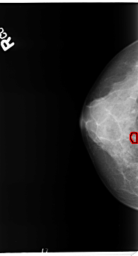 FILE: B_3363_1.RIGHT_MLO.OVERLAY TOTAL_ABNORMALITIES 1 ABNORMALITY 1 LESION_TYPE CALCIFICATION TYPE PLEOMORPHIC DISTRIBUTION CLUSTERED ASSESSMENT 4 SUBTLETY 3 PATHOLOGY BENIGN TOTAL_OUTLINES 1 BOUNDARY |