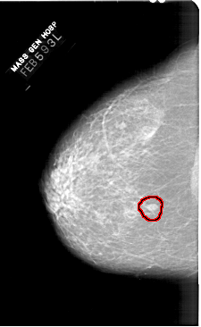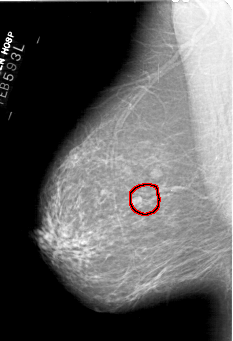 FILE: A_1443_1.LEFT_CC.OVERLAY TOTAL_ABNORMALITIES 1 ABNORMALITY 1 LESION_TYPE MASS SHAPE OVAL MARGINS ILL_DEFINED ASSESSMENT 4 SUBTLETY 3 PATHOLOGY BENIGN TOTAL_OUTLINES 1 BOUNDARY |