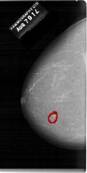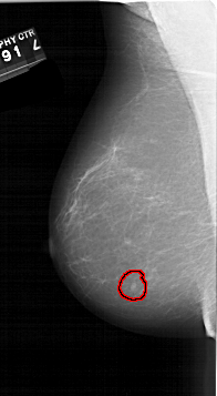 FILE: A_1541_1.LEFT_CC.OVERLAY TOTAL_ABNORMALITIES 1 ABNORMALITY 1 LESION_TYPE MASS SHAPE OVAL MARGINS CIRCUMSCRIBED ASSESSMENT 4 SUBTLETY 4 PATHOLOGY BENIGN TOTAL_OUTLINES 1 BOUNDARY |