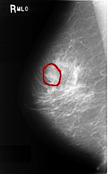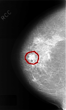 FILE: C_0338_1.RIGHT_CC.OVERLAY TOTAL_ABNORMALITIES 1 ABNORMALITY 1 LESION_TYPE MASS SHAPE LOBULATED MARGINS CIRCUMSCRIBED ASSESSMENT 4 SUBTLETY 5 PATHOLOGY BENIGN TOTAL_OUTLINES 1 BOUNDARY |