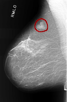 FILE: C_0399_1.RIGHT_CC.OVERLAY TOTAL_ABNORMALITIES 1 ABNORMALITY 1 LESION_TYPE MASS SHAPE LOBULATED MARGINS CIRCUMSCRIBED ASSESSMENT 4 SUBTLETY 5 PATHOLOGY BENIGN TOTAL_OUTLINES 1 BOUNDARY |