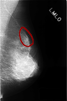 FILE: C_0411_1.LEFT_CC.OVERLAY TOTAL_ABNORMALITIES 1 ABNORMALITY 1 LESION_TYPE CALCIFICATION TYPE PLEOMORPHIC DISTRIBUTION SEGMENTAL ASSESSMENT 4 SUBTLETY 4 PATHOLOGY BENIGN TOTAL_OUTLINES 1 BOUNDARY |