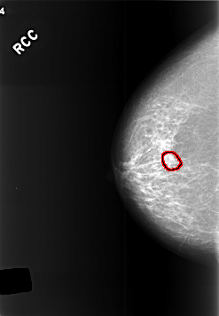 FILE: C_0412_1.RIGHT_CC.OVERLAY TOTAL_ABNORMALITIES 1 ABNORMALITY 1 LESION_TYPE CALCIFICATION TYPE PLEOMORPHIC DISTRIBUTION CLUSTERED ASSESSMENT 3 SUBTLETY 3 PATHOLOGY BENIGN TOTAL_OUTLINES 1 BOUNDARY |