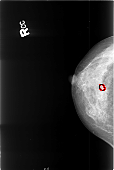 FILE: B_3419_1.RIGHT_CC.OVERLAY TOTAL_ABNORMALITIES 1 ABNORMALITY 1 LESION_TYPE CALCIFICATION TYPE PLEOMORPHIC DISTRIBUTION CLUSTERED ASSESSMENT 4 SUBTLETY 3 PATHOLOGY BENIGN TOTAL_OUTLINES 1 BOUNDARY |