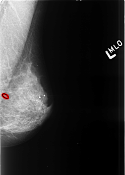 FILE: B_3423_1.LEFT_MLO.OVERLAY TOTAL_ABNORMALITIES 1 ABNORMALITY 1 LESION_TYPE CALCIFICATION TYPE PLEOMORPHIC DISTRIBUTION CLUSTERED ASSESSMENT 4 SUBTLETY 3 PATHOLOGY BENIGN TOTAL_OUTLINES 1 BOUNDARY |