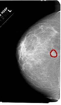 FILE: A_1607_1.LEFT_CC.OVERLAY TOTAL_ABNORMALITIES 1 ABNORMALITY 1 LESION_TYPE MASS SHAPE OVAL MARGINS OBSCURED ASSESSMENT 3 SUBTLETY 2 PATHOLOGY BENIGN TOTAL_OUTLINES 1 BOUNDARY |