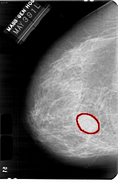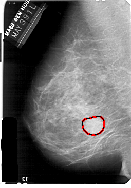 FILE: A_1733_1.LEFT_CC.OVERLAY TOTAL_ABNORMALITIES 1 ABNORMALITY 1 LESION_TYPE MASS SHAPE LOBULATED MARGINS CIRCUMSCRIBED ASSESSMENT 3 SUBTLETY 5 PATHOLOGY BENIGN TOTAL_OUTLINES 1 BOUNDARY |