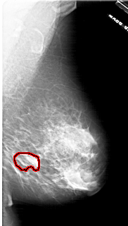 FILE: A_1771_1.RIGHT_CC.OVERLAY TOTAL_ABNORMALITIES 1 ABNORMALITY 1 LESION_TYPE MASS SHAPE LOBULATED MARGINS ILL_DEFINED ASSESSMENT 4 SUBTLETY 3 PATHOLOGY BENIGN TOTAL_OUTLINES 1 BOUNDARY |