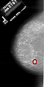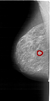 FILE: A_1784_1.LEFT_CC.OVERLAY TOTAL_ABNORMALITIES 1 ABNORMALITY 1 LESION_TYPE MASS SHAPE LOBULATED MARGINS ILL_DEFINED ASSESSMENT 4 SUBTLETY 4 PATHOLOGY BENIGN TOTAL_OUTLINES 1 BOUNDARY |