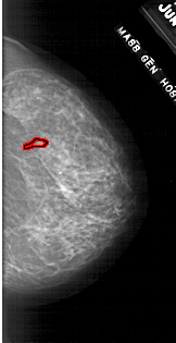 FILE: A_1784_1.RIGHT_MLO.OVERLAY TOTAL_ABNORMALITIES 1 ABNORMALITY 1 LESION_TYPE CALCIFICATION TYPE PLEOMORPHIC DISTRIBUTION CLUSTERED ASSESSMENT 4 SUBTLETY 2 PATHOLOGY BENIGN TOTAL_OUTLINES 1 BOUNDARY |