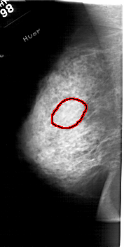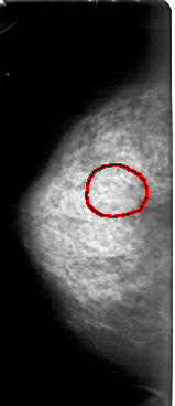 FILE: A_1785_1.LEFT_CC.OVERLAY TOTAL_ABNORMALITIES 1 ABNORMALITY 1 LESION_TYPE MASS SHAPE ROUND MARGINS OBSCURED ASSESSMENT 3 SUBTLETY 3 PATHOLOGY BENIGN TOTAL_OUTLINES 1 BOUNDARY |