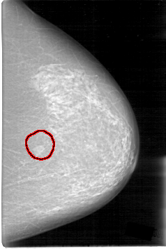 FILE: D_4014_1.LEFT_CC.OVERLAY TOTAL_ABNORMALITIES 1 ABNORMALITY 1 LESION_TYPE MASS SHAPE LOBULATED MARGINS OBSCURED ASSESSMENT 0 SUBTLETY 5 PATHOLOGY BENIGN TOTAL_OUTLINES 1 BOUNDARY |
