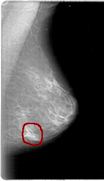 FILE: D_4024_1.LEFT_MLO.OVERLAY TOTAL_ABNORMALITIES 1 ABNORMALITY 1 LESION_TYPE MASS SHAPE LOBULATED MARGINS CIRCUMSCRIBED ASSESSMENT 0 SUBTLETY 3 PATHOLOGY BENIGN TOTAL_OUTLINES 1 BOUNDARY |