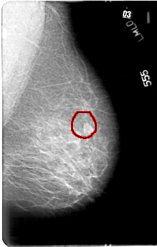 FILE: D_4033_1.LEFT_CC.OVERLAY TOTAL_ABNORMALITIES 1 ABNORMALITY 1 LESION_TYPE MASS SHAPE IRREGULAR MARGINS ILL_DEFINED ASSESSMENT 0 SUBTLETY 5 PATHOLOGY BENIGN TOTAL_OUTLINES 1 BOUNDARY |