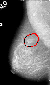 FILE: D_4046_1.RIGHT_CC.OVERLAY TOTAL_ABNORMALITIES 1 ABNORMALITY 1 LESION_TYPE MASS SHAPE OVAL MARGINS OBSCURED ASSESSMENT 0 SUBTLETY 4 PATHOLOGY BENIGN TOTAL_OUTLINES 2 BOUNDARY |