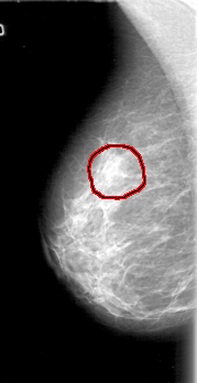 FILE: D_4066_1.RIGHT_CC.OVERLAY TOTAL_ABNORMALITIES 1 ABNORMALITY 1 LESION_TYPE MASS SHAPE ROUND MARGINS OBSCURED ASSESSMENT 0 SUBTLETY 2 PATHOLOGY BENIGN TOTAL_OUTLINES 1 BOUNDARY |
