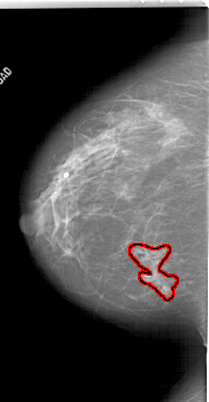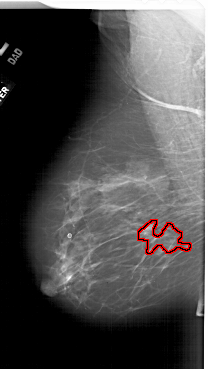 FILE: A_1788_1.RIGHT_CC.OVERLAY TOTAL_ABNORMALITIES 1 ABNORMALITY 1 LESION_TYPE MASS SHAPE LOBULATED MARGINS ILL_DEFINED ASSESSMENT 4 SUBTLETY 4 PATHOLOGY BENIGN TOTAL_OUTLINES 1 BOUNDARY |