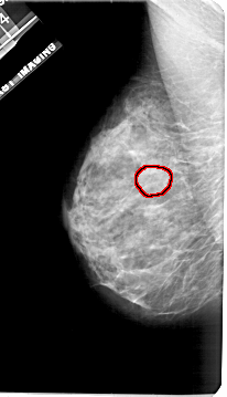 FILE: A_1921_1.LEFT_CC.OVERLAY TOTAL_ABNORMALITIES 1 ABNORMALITY 1 LESION_TYPE MASS SHAPE OVAL MARGINS OBSCURED ASSESSMENT 3 SUBTLETY 2 PATHOLOGY BENIGN TOTAL_OUTLINES 1 BOUNDARY |
