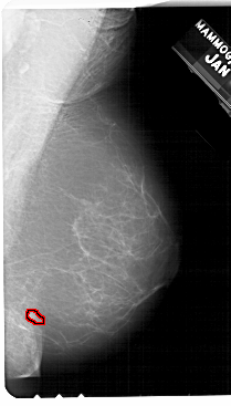 FILE: A_1943_1.RIGHT_MLO.OVERLAY TOTAL_ABNORMALITIES 1 ABNORMALITY 1 LESION_TYPE MASS SHAPE LOBULATED MARGINS ILL_DEFINED ASSESSMENT 3 SUBTLETY 3 PATHOLOGY BENIGN TOTAL_OUTLINES 1 BOUNDARY |