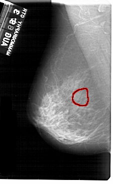 FILE: A_1954_1.LEFT_MLO.OVERLAY TOTAL_ABNORMALITIES 1 ABNORMALITY 1 LESION_TYPE CALCIFICATION TYPE PUNCTATE DISTRIBUTION CLUSTERED ASSESSMENT 4 SUBTLETY 3 PATHOLOGY BENIGN TOTAL_OUTLINES 1 BOUNDARY |