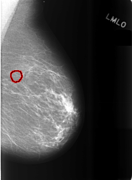 FILE: C_0483_1.LEFT_CC.OVERLAY TOTAL_ABNORMALITIES 1 ABNORMALITY 1 LESION_TYPE CALCIFICATION TYPE PLEOMORPHIC DISTRIBUTION CLUSTERED ASSESSMENT 4 SUBTLETY 4 PATHOLOGY BENIGN TOTAL_OUTLINES 1 BOUNDARY |
