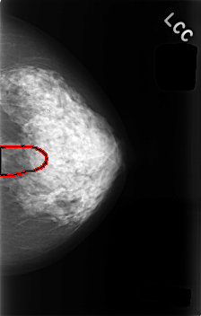 FILE: C_0495_1.LEFT_MLO.OVERLAY TOTAL_ABNORMALITIES 1 ABNORMALITY 1 LESION_TYPE CALCIFICATION TYPE AMORPHOUS DISTRIBUTION SEGMENTAL ASSESSMENT 4 SUBTLETY 2 PATHOLOGY BENIGN TOTAL_OUTLINES 1 BOUNDARY |
