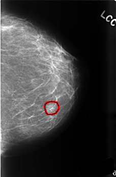 FILE: C_0500_1.LEFT_CC.OVERLAY TOTAL_ABNORMALITIES 1 ABNORMALITY 1 LESION_TYPE CALCIFICATION TYPE PLEOMORPHIC DISTRIBUTION CLUSTERED ASSESSMENT 3 SUBTLETY 3 PATHOLOGY BENIGN TOTAL_OUTLINES 1 BOUNDARY |