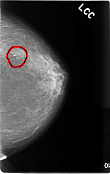 FILE: C_0502_1.LEFT_MLO.OVERLAY TOTAL_ABNORMALITIES 1 ABNORMALITY 1 LESION_TYPE CALCIFICATION TYPE PLEOMORPHIC DISTRIBUTION CLUSTERED ASSESSMENT 3 SUBTLETY 5 PATHOLOGY BENIGN TOTAL_OUTLINES 1 BOUNDARY |