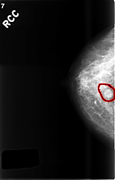 FILE: C_0507_1.RIGHT_CC.OVERLAY TOTAL_ABNORMALITIES 1 ABNORMALITY 1 LESION_TYPE MASS SHAPE OVAL MARGINS CIRCUMSCRIBED ASSESSMENT 3 SUBTLETY 5 PATHOLOGY BENIGN TOTAL_OUTLINES 2 BOUNDARY |