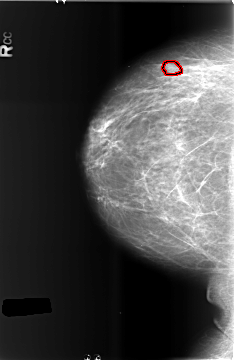 FILE: B_3432_1.RIGHT_CC.OVERLAY TOTAL_ABNORMALITIES 1 ABNORMALITY 1 LESION_TYPE MASS SHAPE OVAL MARGINS CIRCUMSCRIBED-OBSCURED ASSESSMENT 4 SUBTLETY 3 PATHOLOGY BENIGN TOTAL_OUTLINES 1 BOUNDARY |