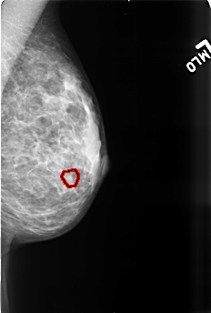 FILE: B_3457_1.LEFT_CC.OVERLAY TOTAL_ABNORMALITIES 1 ABNORMALITY 1 LESION_TYPE CALCIFICATION TYPE PLEOMORPHIC DISTRIBUTION CLUSTERED ASSESSMENT 4 SUBTLETY 3 PATHOLOGY BENIGN TOTAL_OUTLINES 1 BOUNDARY |