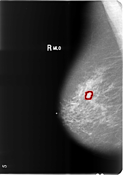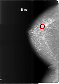 FILE: B_3490_1.RIGHT_CC.OVERLAY TOTAL_ABNORMALITIES 1 ABNORMALITY 1 LESION_TYPE MASS SHAPE ROUND-LOBULATED MARGINS CIRCUMSCRIBED ASSESSMENT 3 SUBTLETY 3 PATHOLOGY BENIGN TOTAL_OUTLINES 1 BOUNDARY |