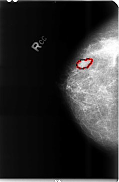 FILE: B_3491_1.RIGHT_CC.OVERLAY TOTAL_ABNORMALITIES 1 ABNORMALITY 1 LESION_TYPE MASS SHAPE LOBULATED MARGINS CIRCUMSCRIBED-ILL_DEFINED ASSESSMENT 4 SUBTLETY 4 PATHOLOGY BENIGN TOTAL_OUTLINES 1 BOUNDARY |